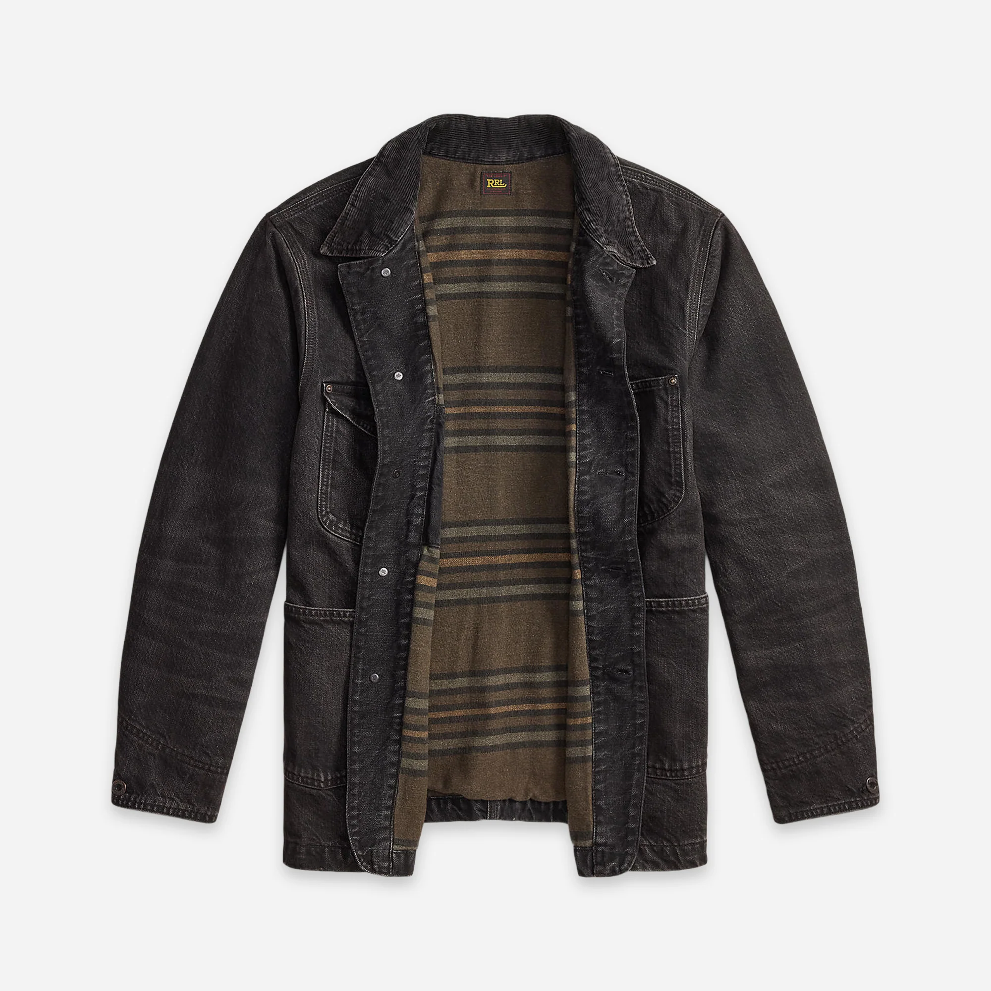 Utility-inspired model made with cotton canvas. Corduroy collar. Yarn-dyed striped cotton lining. Specially developed for a vintage look and feel. American-made metal buttons.