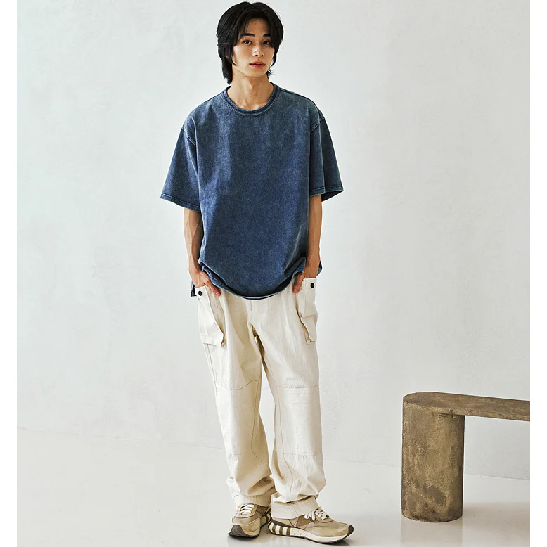 -70%OG VINTAGE DYEING HALF TEE - WASHED NAVY—